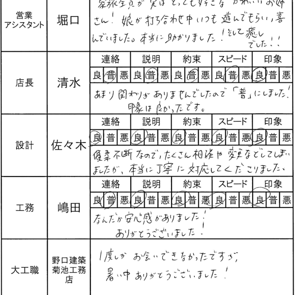 こちらの不安も全て取り除いてくれる店長さんを始めスタッフさんがいて完成させる事ができたと思っています。 桐生市 T様