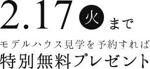 2026年2月17日(火)までに、新しくできる平屋の東松山モデルハウス見学の予約をして来場することで、通常プレゼントしている10000円分のクオカードを20,000円分にしてお渡しします。